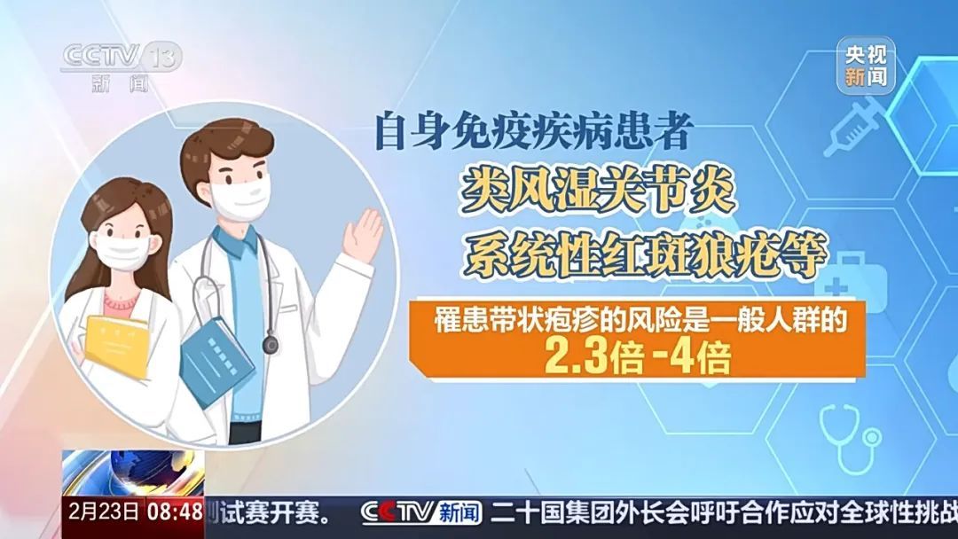 除了50岁以上的中老年人患病率升高以外,糖尿病、慢性肾脏疾病、慢性阻塞性肺疾病等慢性病患者,罹患带状疱疹风险增加24%到41%;自身免疫疾病患者,比如类风湿关节炎、系统性红斑狼疮等,罹患带状疱疹的风险是一般人群的2.3倍到4倍。
